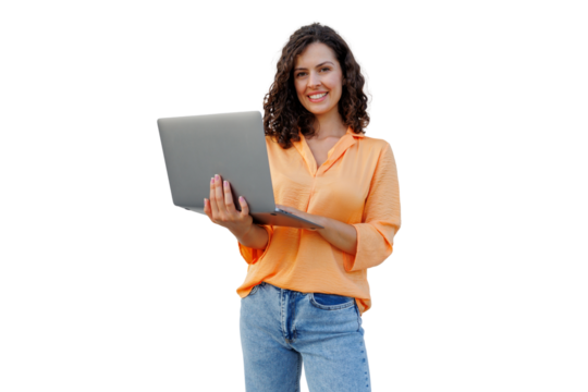 Portrait of a young woman  in White Shirt, isolated on transparent background