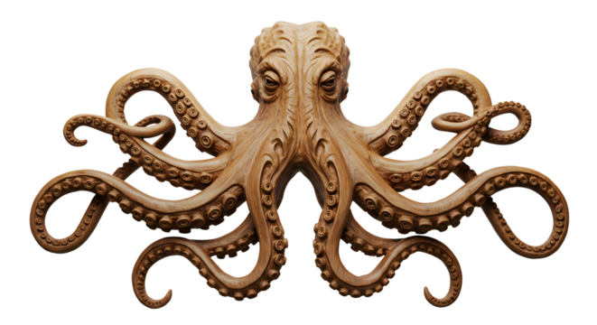 Detailed Carved Octopus Sculpture with Curled Tentacles on White Background
