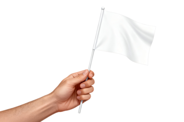 Hand Holding Small White Flag surrender cutout PNG isolated on a transparent background