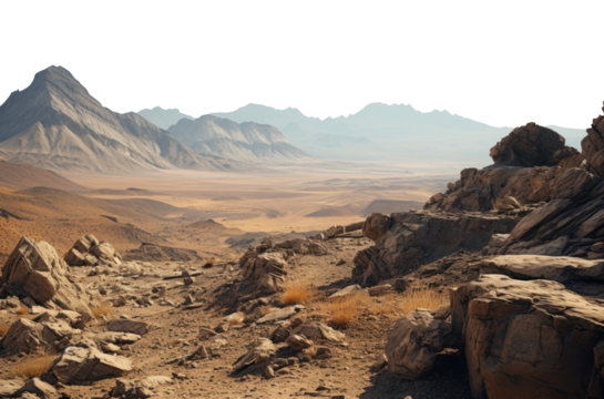barren desert landscape. transparent PNG. Desert landscape. rocky alien planet. Mars surface.