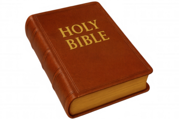 Leather bound holy bible with embossed cross detail isolated on transparent background