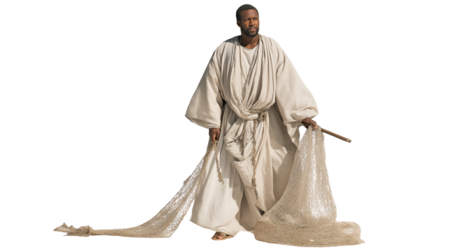 Young nobleman full body on transparent background, biblical rich ruler in elegant robe standing confidently, isolated New Testament character PNG.