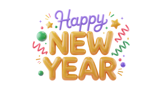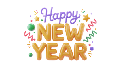 Vibrant lettering for new year celebration on transparent background