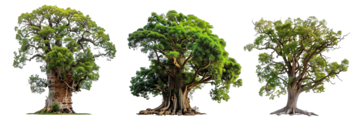 set of kauri, ancient and massive trees from New Zealand, isolated on transparent background