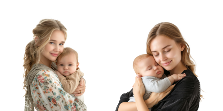 Young blonde woman  with her newborn baby over isolated chroma key background with happy expression