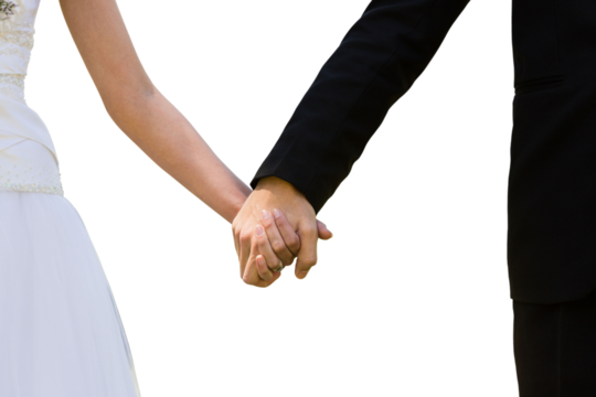 Just married couple holding hands on transparent background