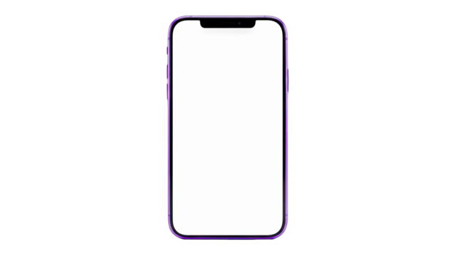 Purple Smartphone with Blank Screen for App Mockup on White Background