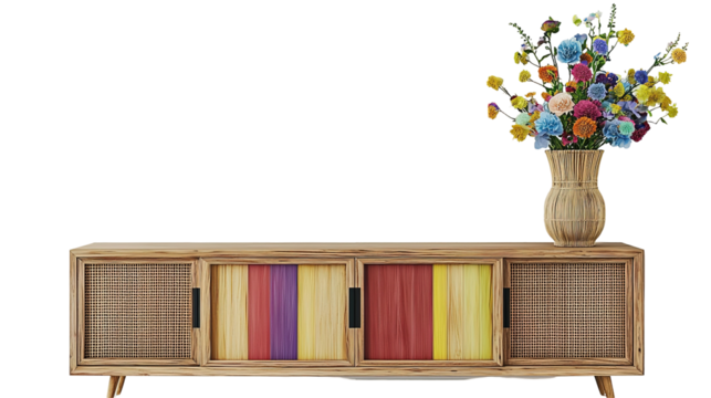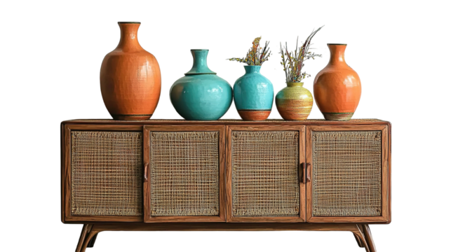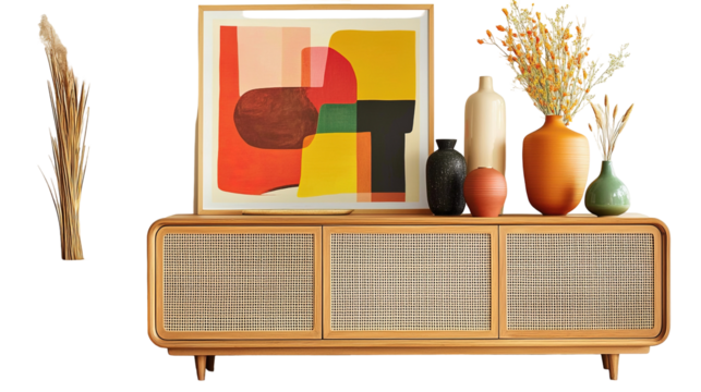 Stylish wooden chair next to a sideboard in a modern living room