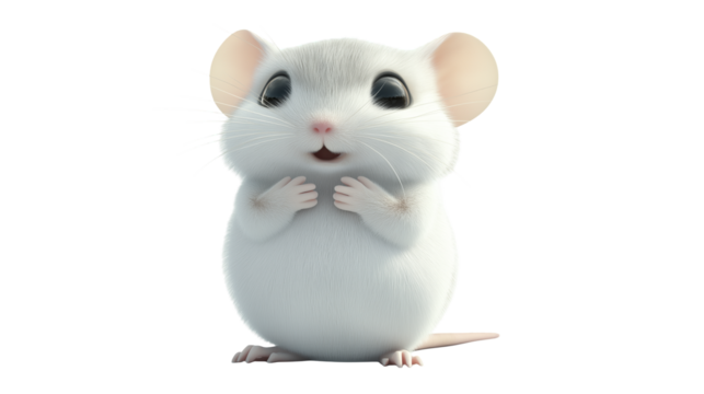 High-resolution studio photo of a white albino domestic mouse, pink eyes, detailed fur, natural pose, isolated on white background.