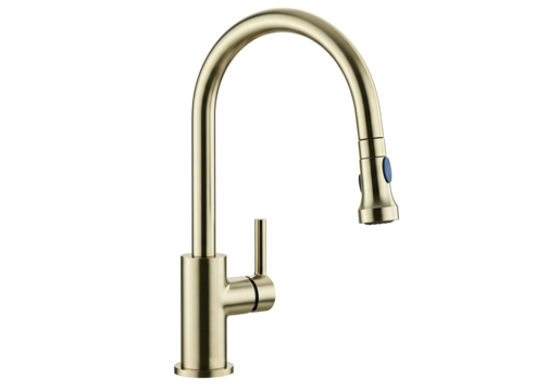Modern brushed nickel pull down kitchen faucet isolated on transparent background