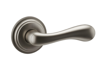Brushed nickel door handle isolated on transparent background