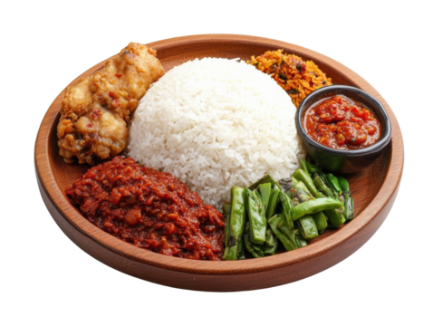 Delicious bowl of vibrant jollof rice garnished with fresh herbs on a bright surface isolated on transparent background