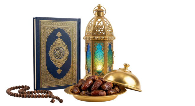 Ramadan Kareem: Quran, Dates, and Lantern - Islamic Holy Month Symbols
