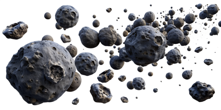 dark meteor asteroid belt isolated on white background.AI GENERATED