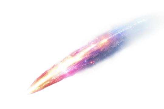 Luminous cosmic object streaking across starry expanse, transparent backdrop enabling seamless digital design integration
