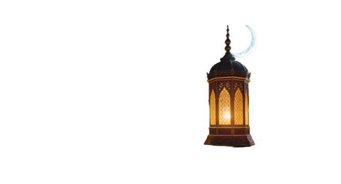 A Glowing Lantern Under a Crescent Moon and Starry Night Sky in the Desert