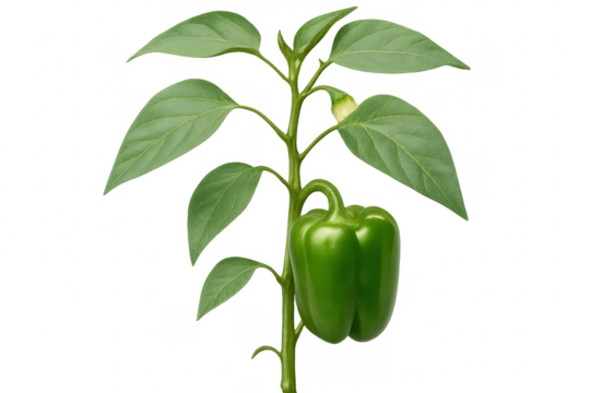 Isolated yellow bell pepper with a green stem, a vibrant and healthy vegetable close-up