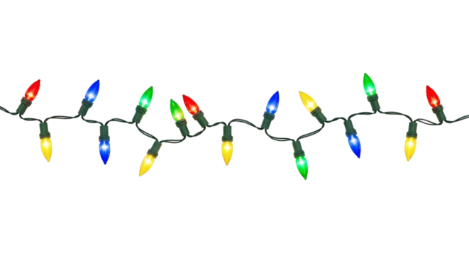 Colorful christmas lights string isolated on transparent background