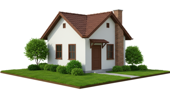 Isolated Cartoon House with Brick Chimney
