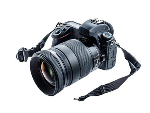 a black camera with a strap