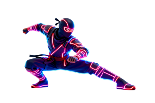 Neon Glowing Ninja Character in Dynamic Pose
