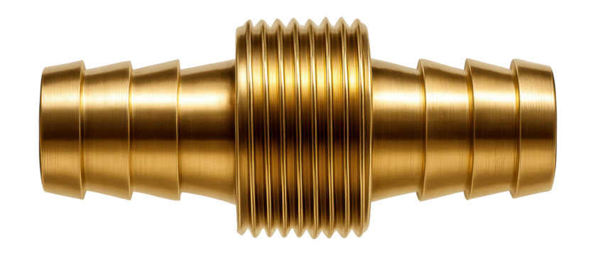 Brass pipe nipple with barbed connections