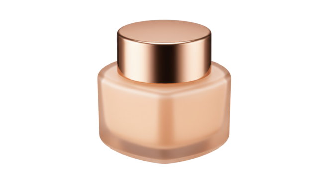 Elegant frosted glass cosmetic bottle with copper lid isolated, beauty product container for skincare and makeup on no background