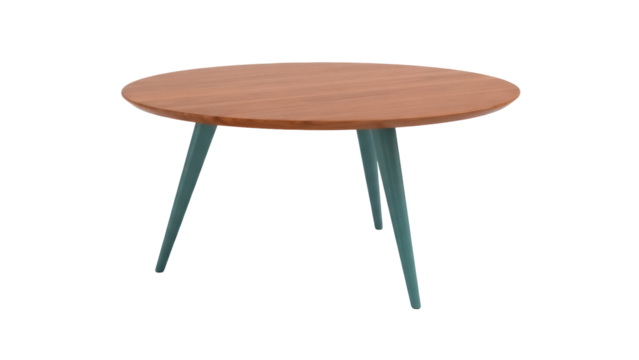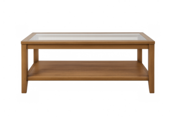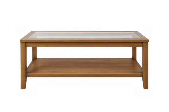 Modern wooden coffee table with glass top on transparent background