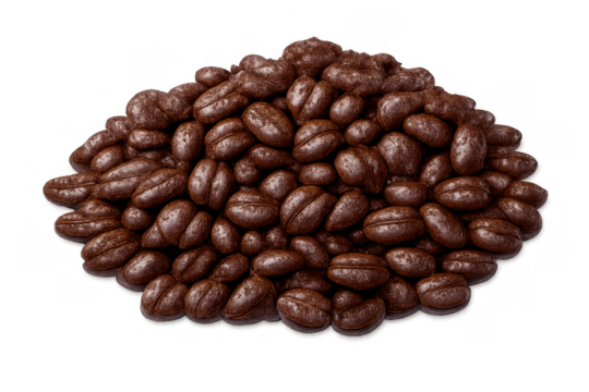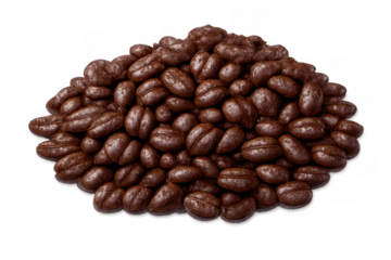 Pile of chocolate covered coffee beans creating a delicious sweet snack, providing energy and a rich flavor, transparent background