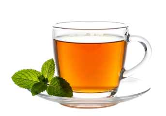 Classic black ceramic mug filled with black tea, isolated on transparent background