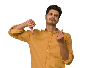 Young handsome caucasian man isolated on white background showing that she has no money.