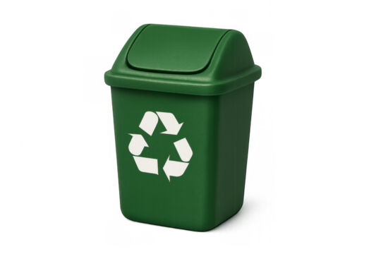 Green recycling bin with symbol on transparent background