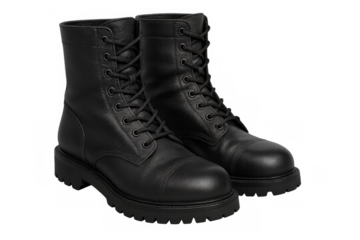 Vintage Black Leather Shoes on Isolated Transparent Background