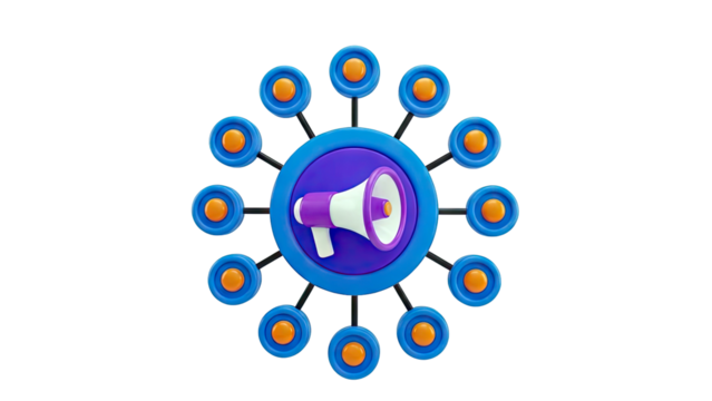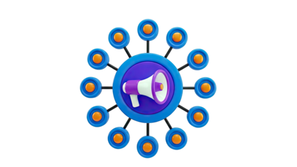 Blue network icon representing connected nodes, social media, technology, and communication symbol on transparent background