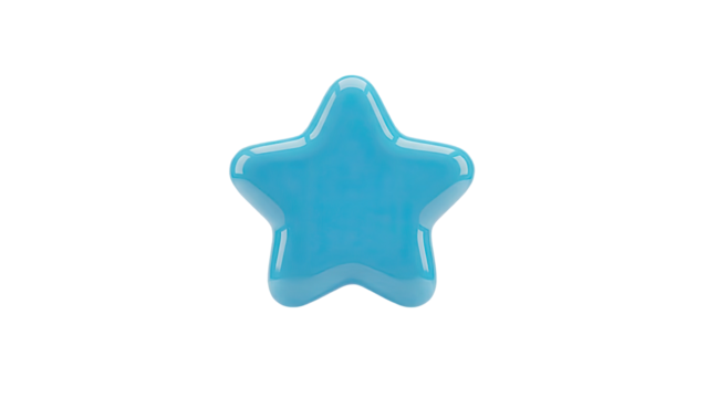 3D Blue glossy star shape on transparent background