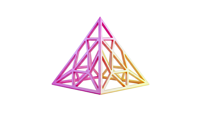Geometric Pyramid Sculpture with Pink and Yellow Gradient