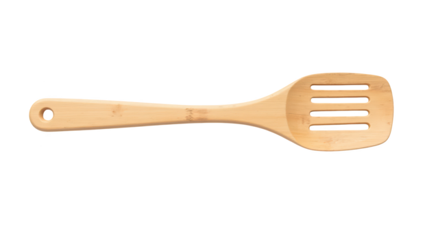 Bamboo spatula kitchen utensil cooking tool with slotted design for easy flipping and serving. Ideal for non stick cookware and eco friendly