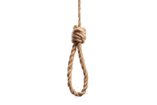 Noose: A starkly realistic studio shot capturing a coiled rope forming a menacing noose, evoking a sense of dread and foreboding.