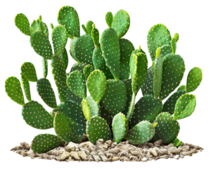 Green opuntia tropical cactus plants isolated on transparent background