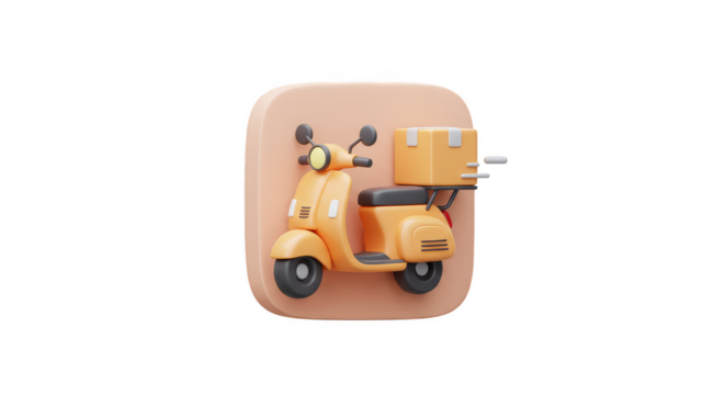 3D Rendering of Orange Delivery Scooter with Box Isolated on Transparent