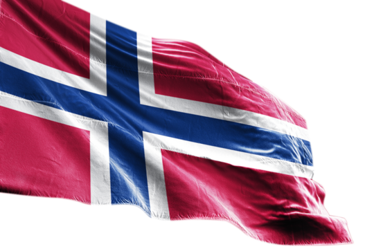Norwegian flag waving on transparent background: symbol of scandinavian nation