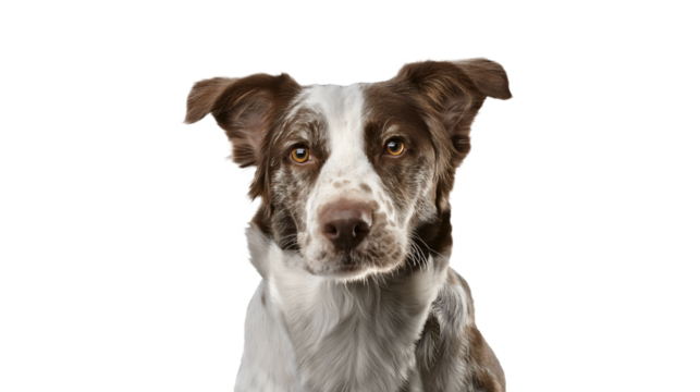 Cute, happy dog headshot smiling on a bright, PNG file of isolated cutout object on transparent background.