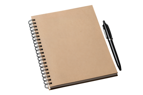 Open Spiral Notebook with Pen on White Background for Note Taking or Writing