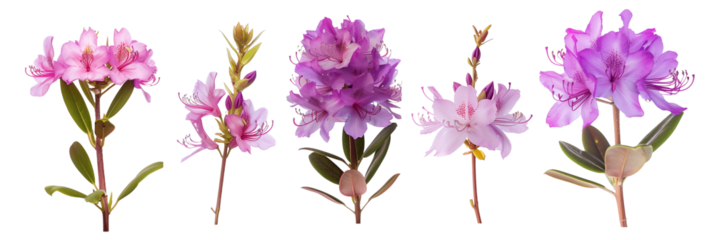 set of rhodora (Rhododendron canadense), notable for their spectacular purple flowers, isolated on transparent background