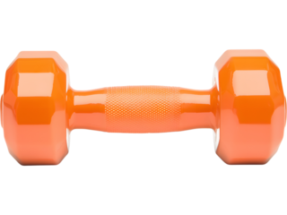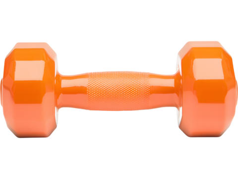Bright orange vinyl dumbbell isolated on transparent background. Suitable for home workouts, fitness apps, and beginner training visuals.