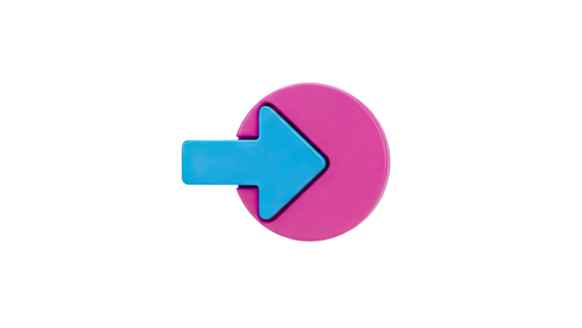 3D Icon of a blue arrow emerging from a pink circle on transparent background