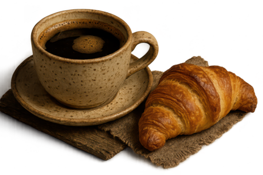 Coffee and croissant with a transparent background for designs now.