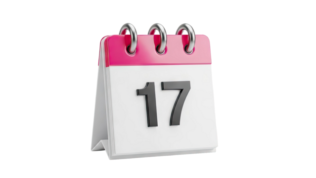 Calendar page with the number 17 on transparent background