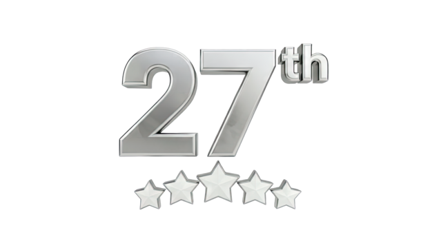 3D 27th Anniversary or Ranking with Stars on transparent background