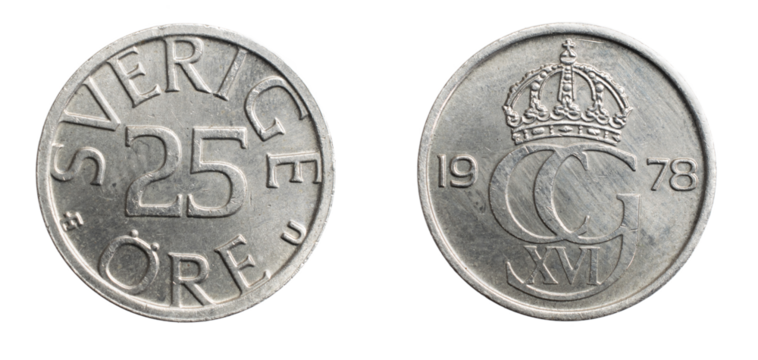 A quarter dollar coin on a white isolated background